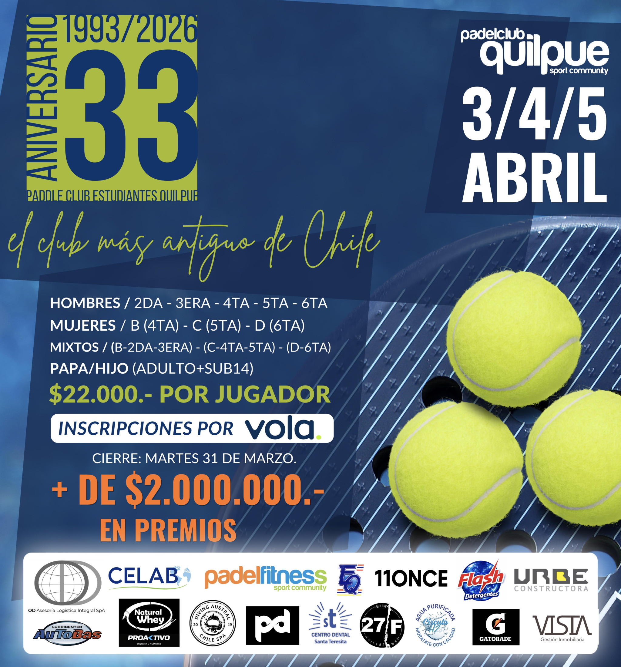 TORNEO 33 ANIVERSARIO PADDLE CLUB ESTUDIANTES QUILPUE