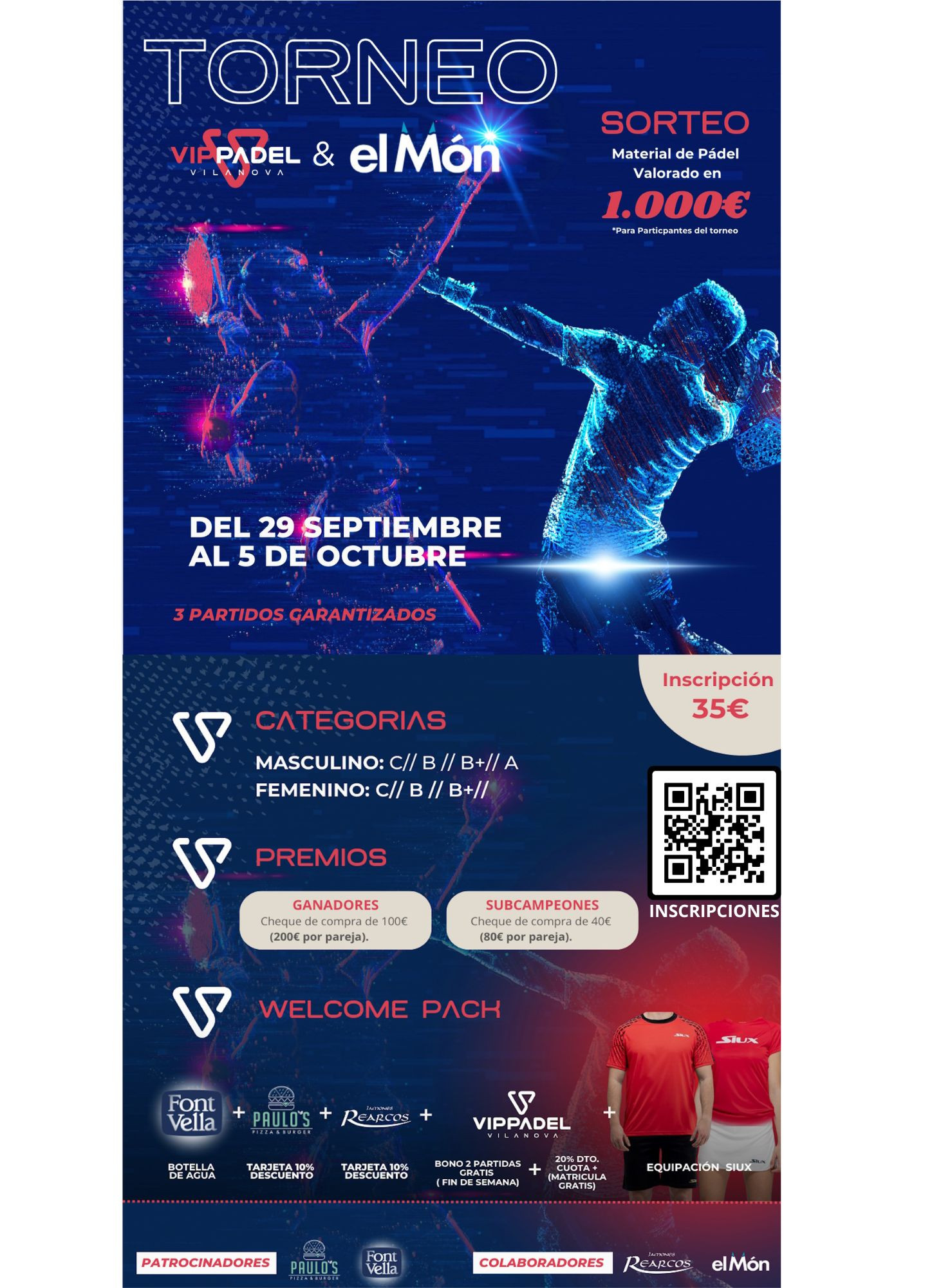 VIP PADEL VILANOVA está pensado para ti!! Alquiler de Pistas: Disponibilidad de pistas de pádel para alquiler por horas. Clases y Entrenamiento: Clases para todos los niveles, desde principiantes hasta avanzados, impartidas por entrenadores profesionales. Torneos y Competiciones: Organización de torneos y competiciones abiertas para socios y no socios. Ligas y Eventos Sociales: Ligas regulares y eventos sociales para fomentar la comunidad entre los jugadores. Zona de Relax y Café: Áreas de descanso y cafetería para disfrutar de bebidas y snacks antes o después de los partidos. Tienda Deportiva: Venta de ropa, calzado y accesorios de pádel. Vestuario y Duchas: Instalaciones cómodas para cambiarse y ducharse después de los partidos. Alquiler de Equipamiento: Opción de alquilar palas para aquellos que no tienen su propio equipo. Actividades para Niños: Clases y campamentos específicos para los más pequeños, fomentando el deporte desde temprana edad.